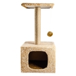 Кігтеточка-будиночок з іграшкою. Розмір будиночка - 34 см х 34 см, верхня платформа - 30 см х 30 см, висота всієї когтеточки - 67 см.