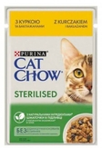 Повнораціонний вологий корм із куркою та баклажанами в підливці для стерилізованих котів. Це збалансований раціон, що забезпечує організм улюбленця необхідними поживними речовинами.