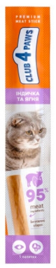 Апетитні ласощі у вигляді м’ясної палички з індичкою та ягням для котів. Ідеальне частування, щоби побалувати свого улюбленця між основними прийманнями їжі.
