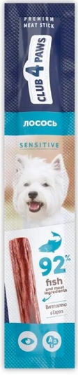 Апетитні ласощі у вигляді м’ясної палички з лососем для собак із чутливим травленням. Ідеальне частування, щоби побалувати свого улюбленця між основними прийманнями їжі.