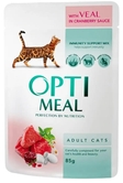 Повнораціонний вологий корм у вигляді апетитних шматочків із телятиною в журавлиному соусі для дорослих котів.
